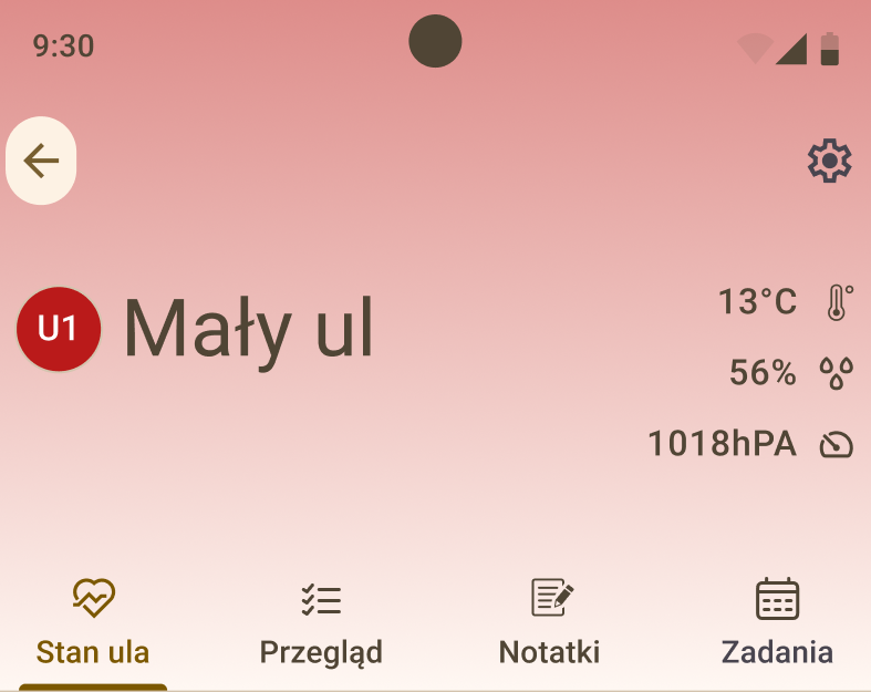 - Ustawienia pasieki i ula: Ikona zębatki w widoku pasieki (zakładka Ule) lub ula (zakładka Szczegóły) prowadzi do ustawień. Możesz tu edytować informacje o pasiece lub ulu.